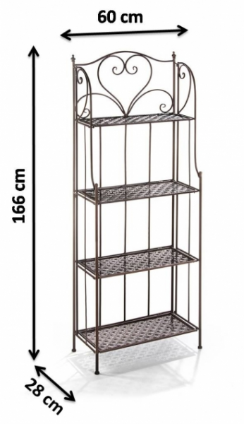 Ručně vyrobený kovový regál, police ve vintage stylu nabízí dostatek úložného prostoru. Když se nepoužívá, je možno jej složit. Díky klasickému venkovskému stylu je možno jej začlenit nejen do obýváku, ale také do ložnice, koupelny, předsíně.